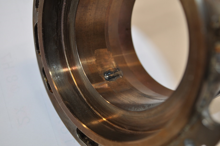Rechargement d'une ligne de visibilité sur le diamètre intérieur d'une bague de paraison. Matière: 42CMD8, 1.2312, trempé.