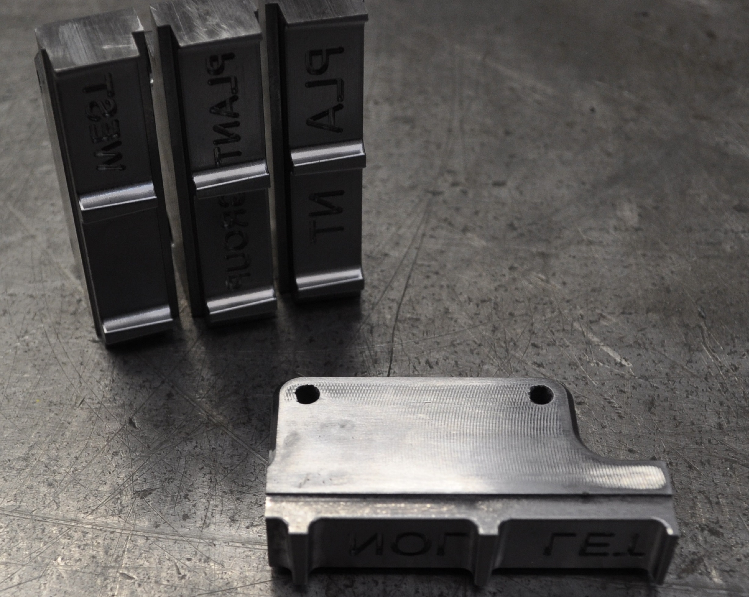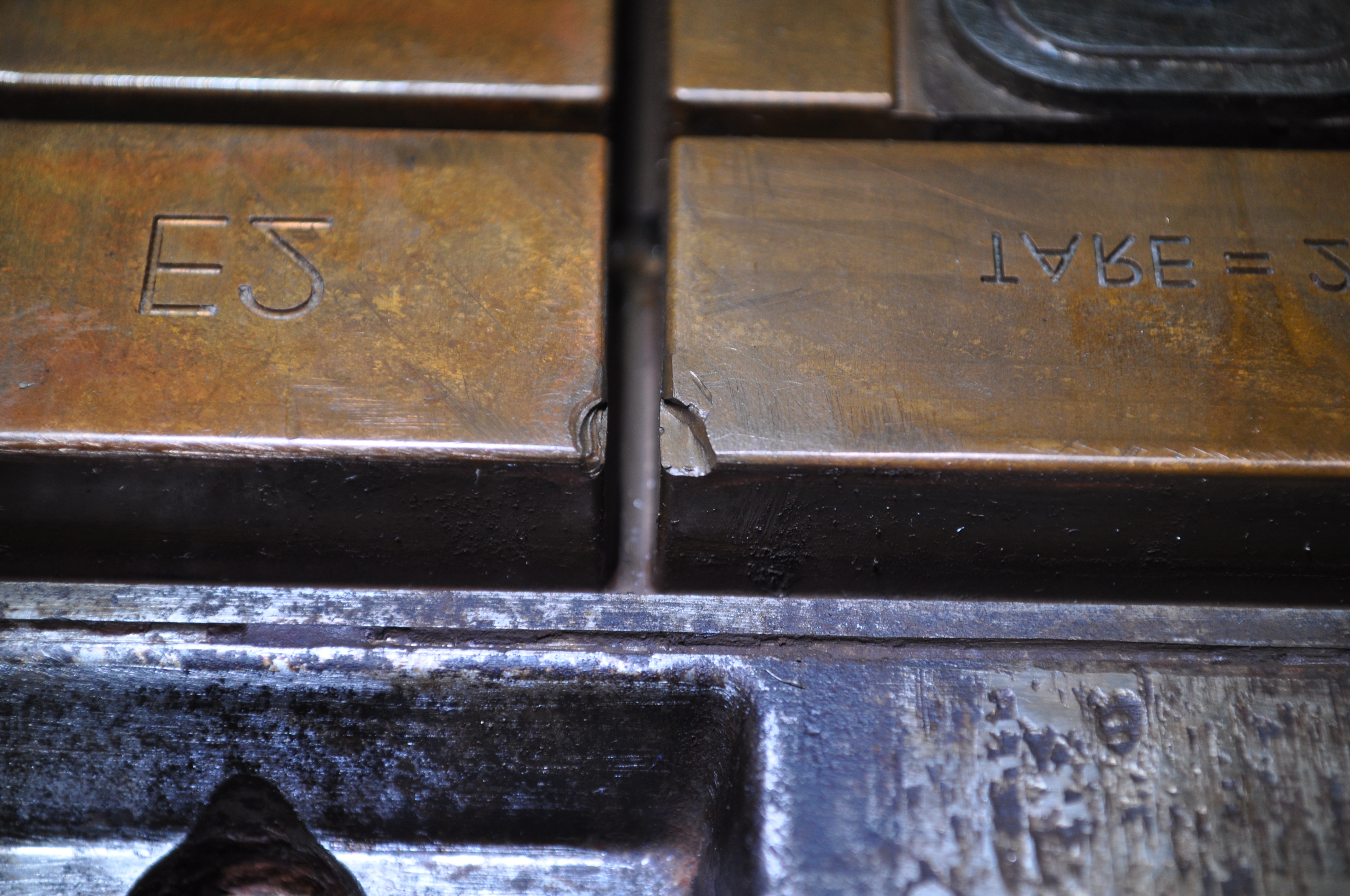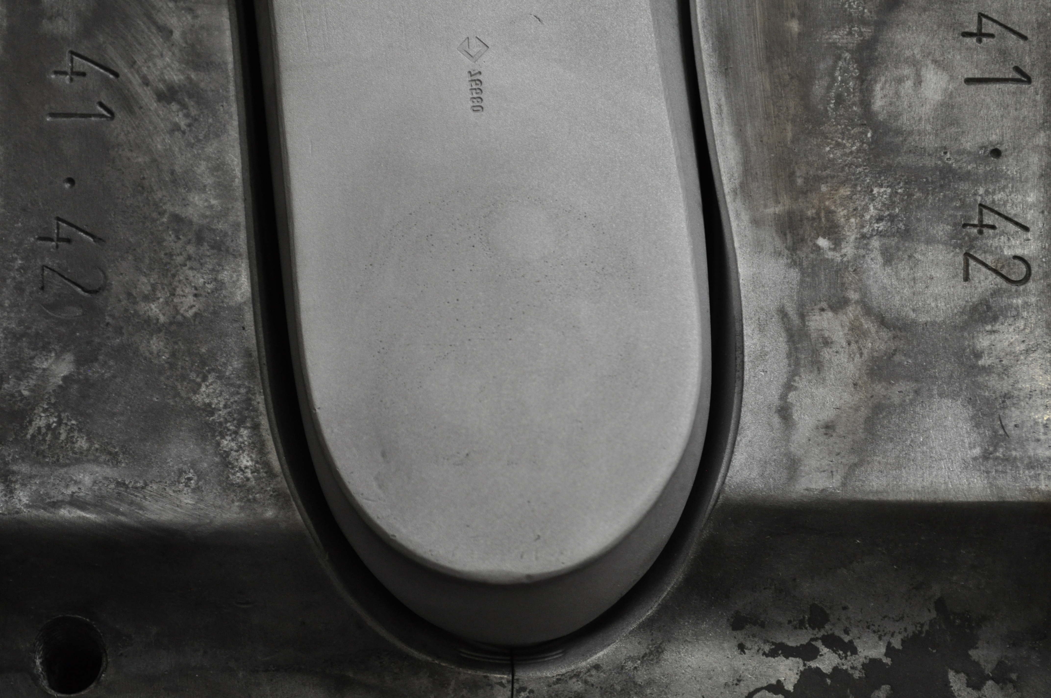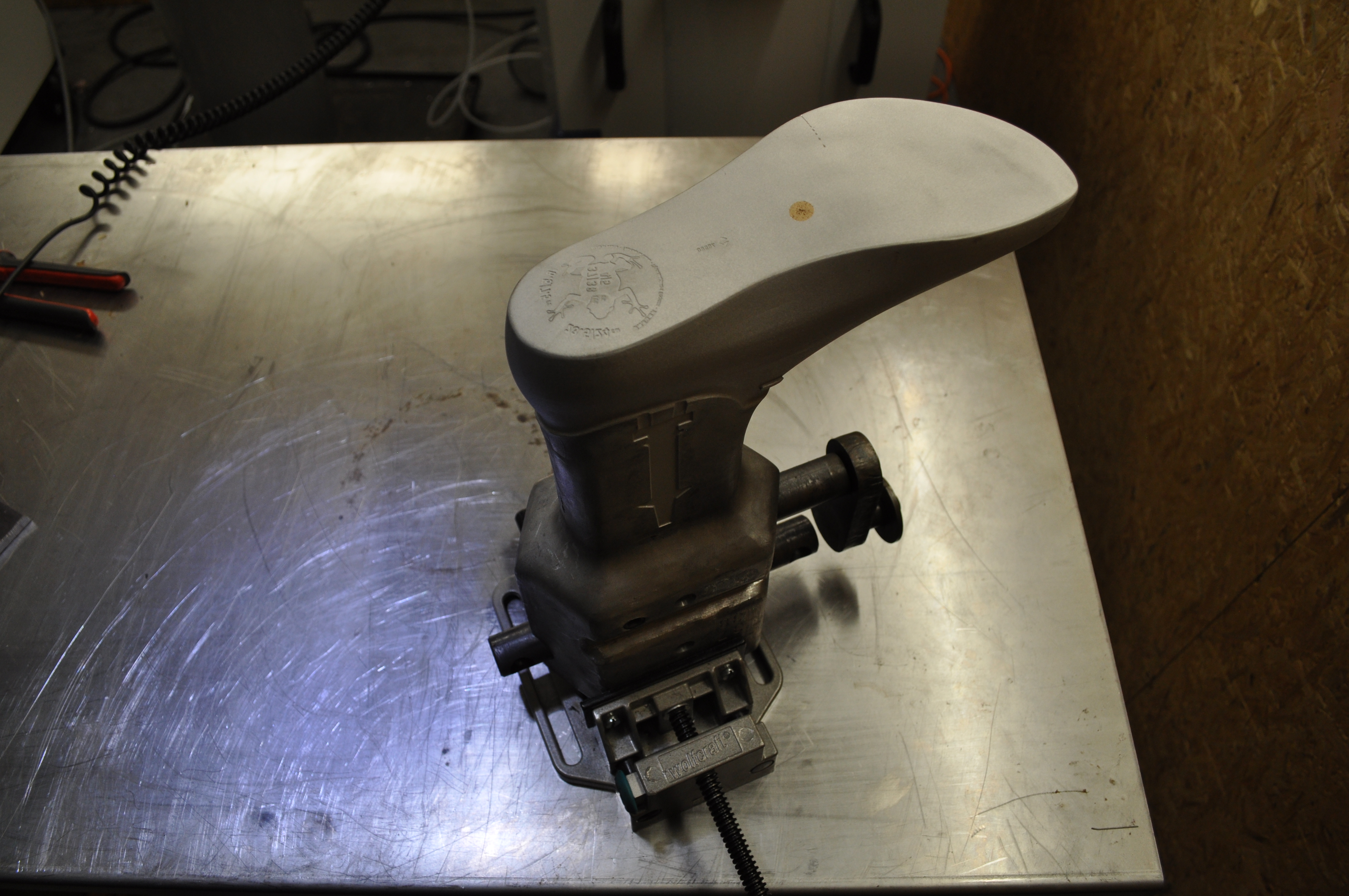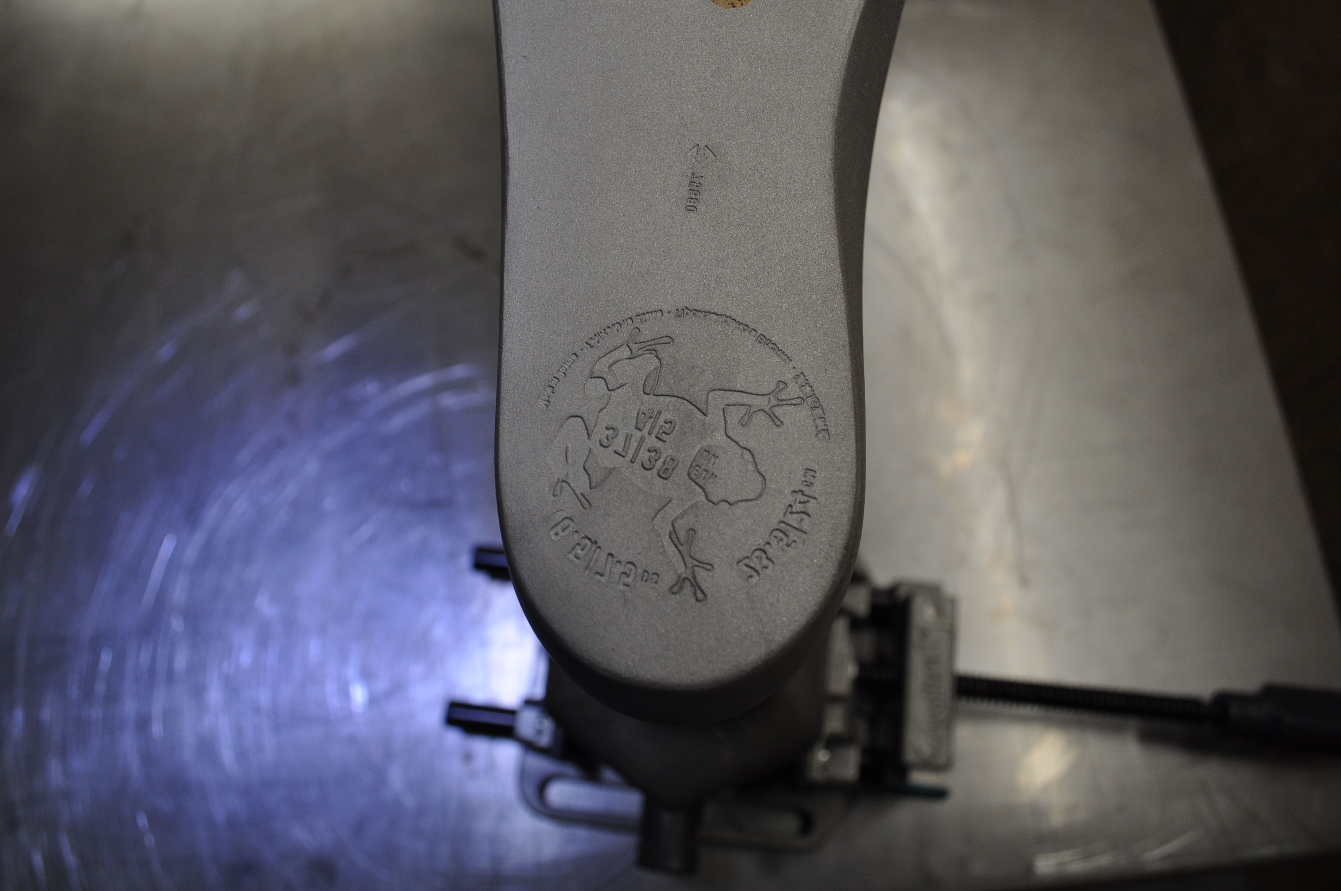 Réparation d'une empreinte de semelle d'une grande marque française. Photos avant/après. Matière: aluminium 6082.