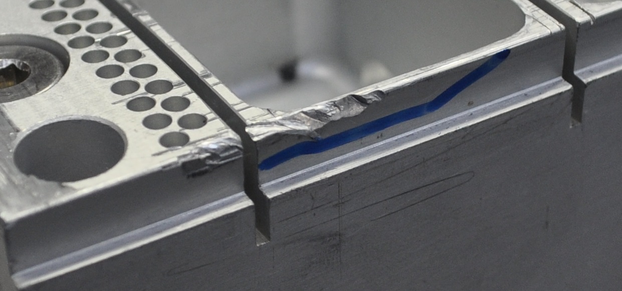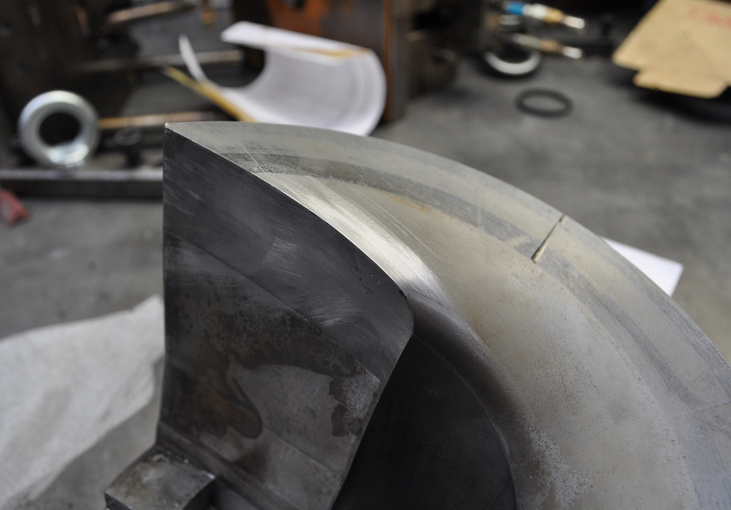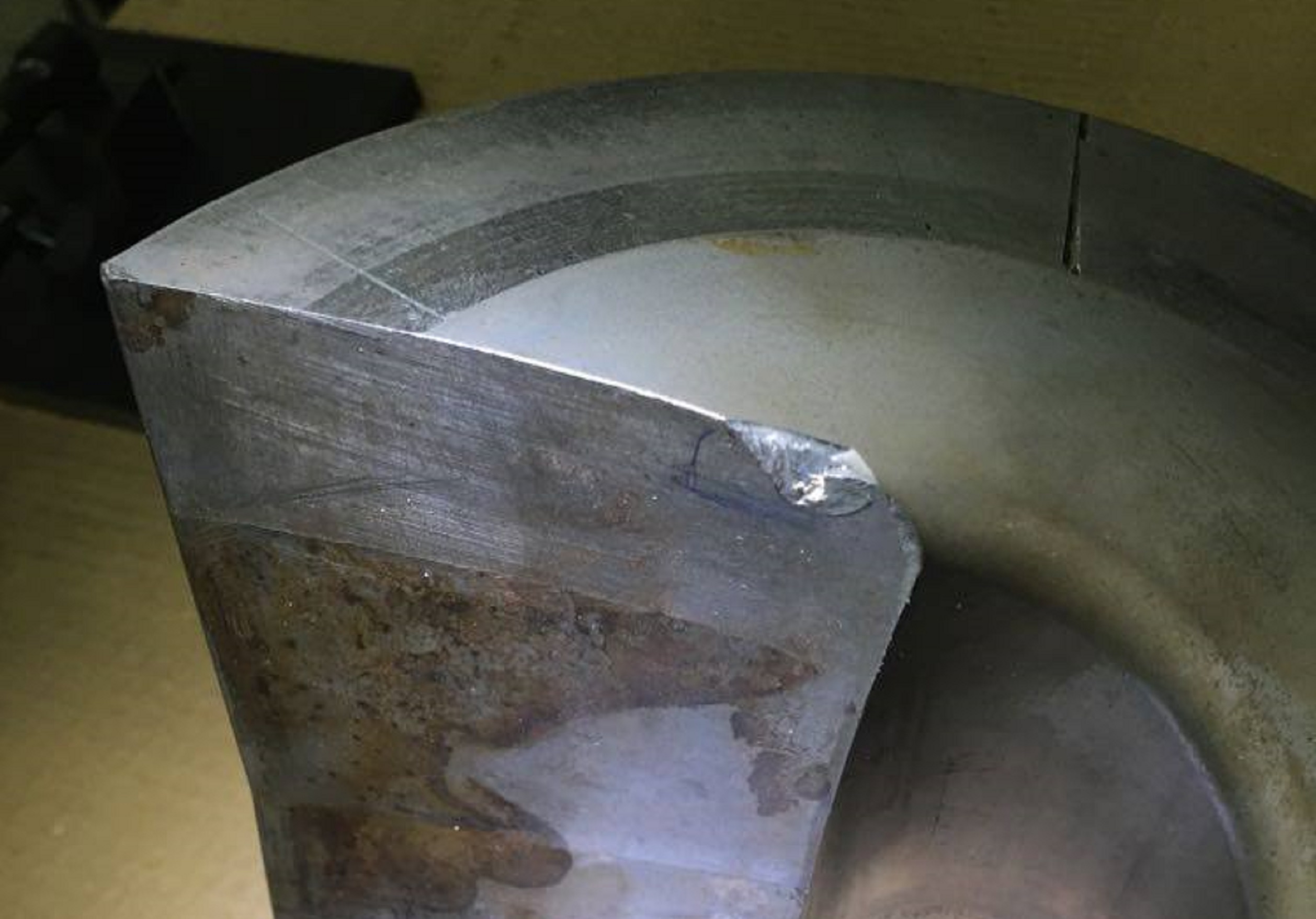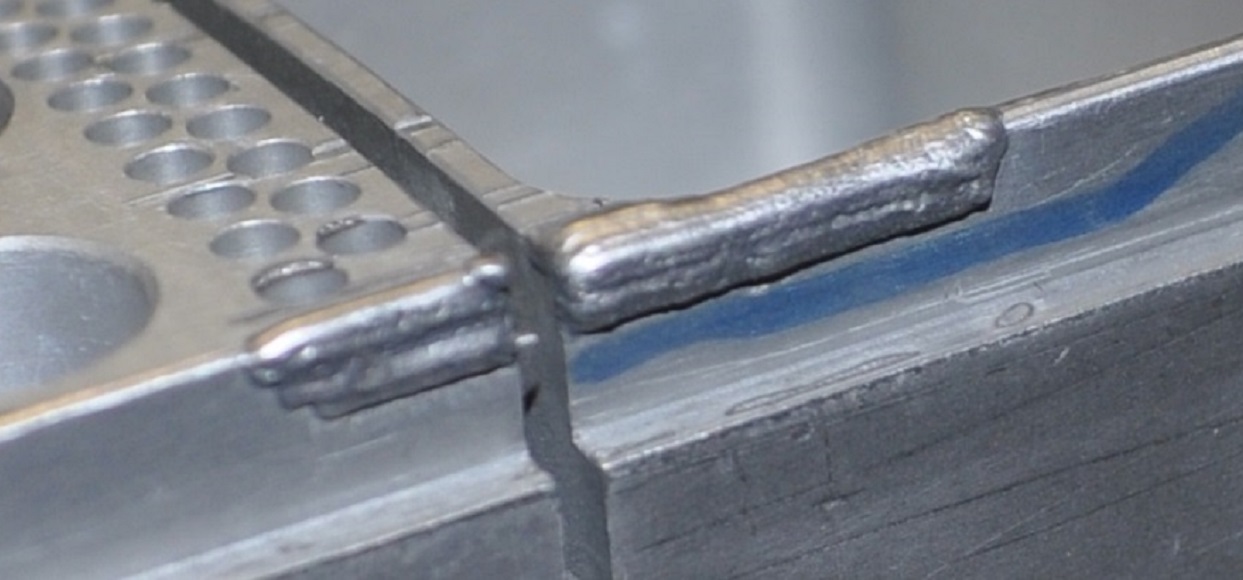 Réparation d’outils de production rendus inutilisables suite à une erreur de manipulation. Photos avant intervention, après rechargement et après polissage. Matière : aluminium 6082.