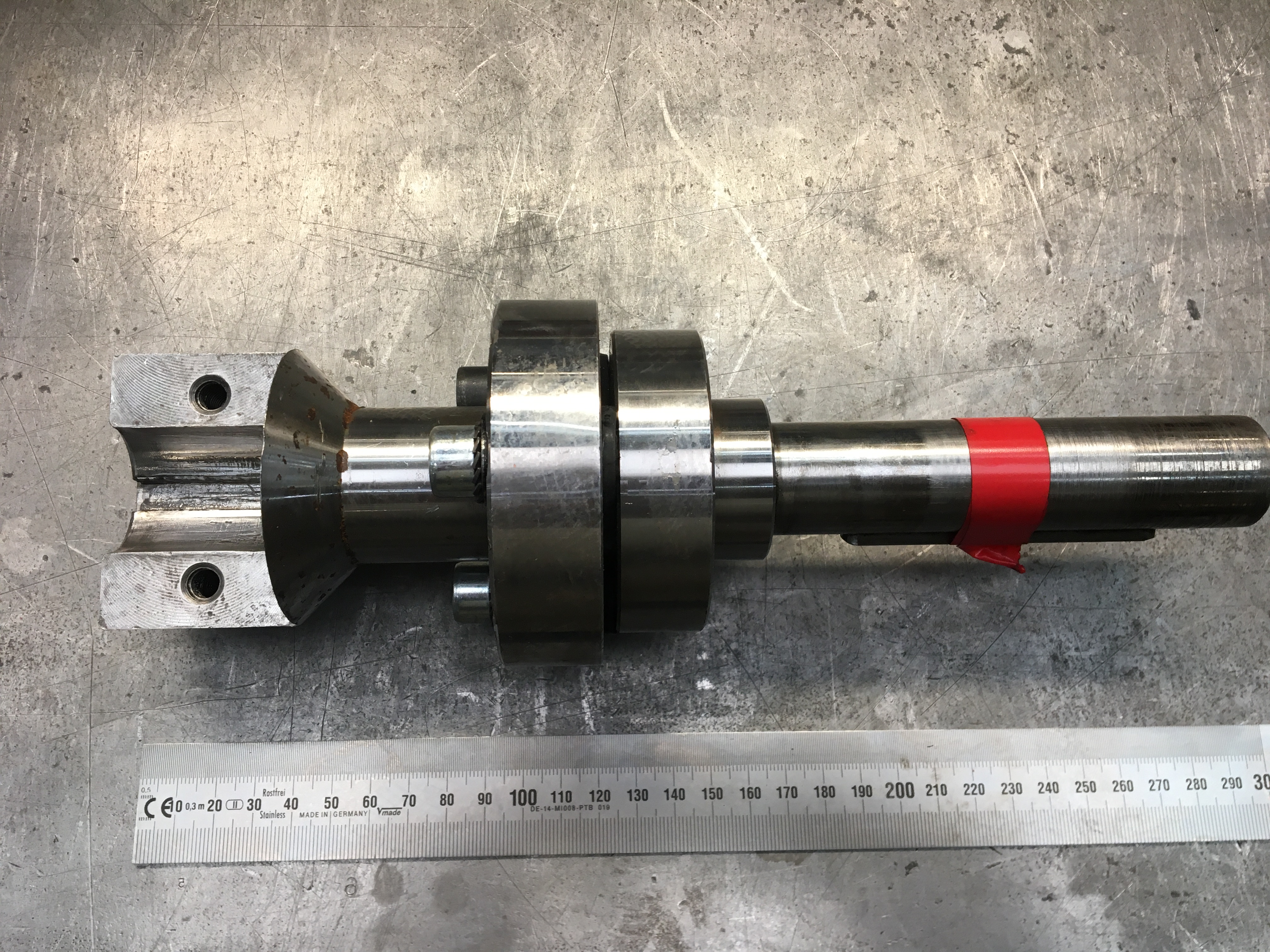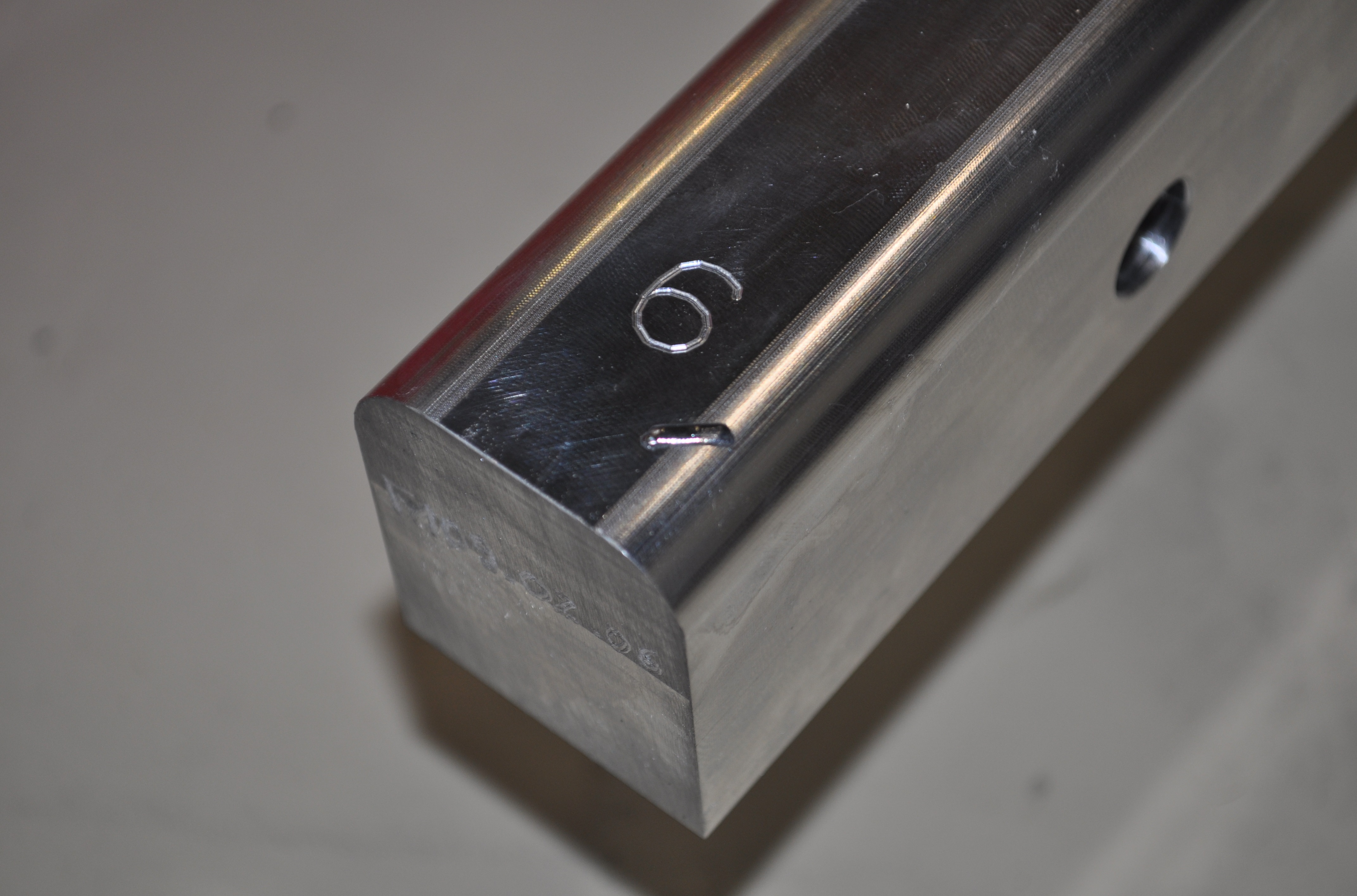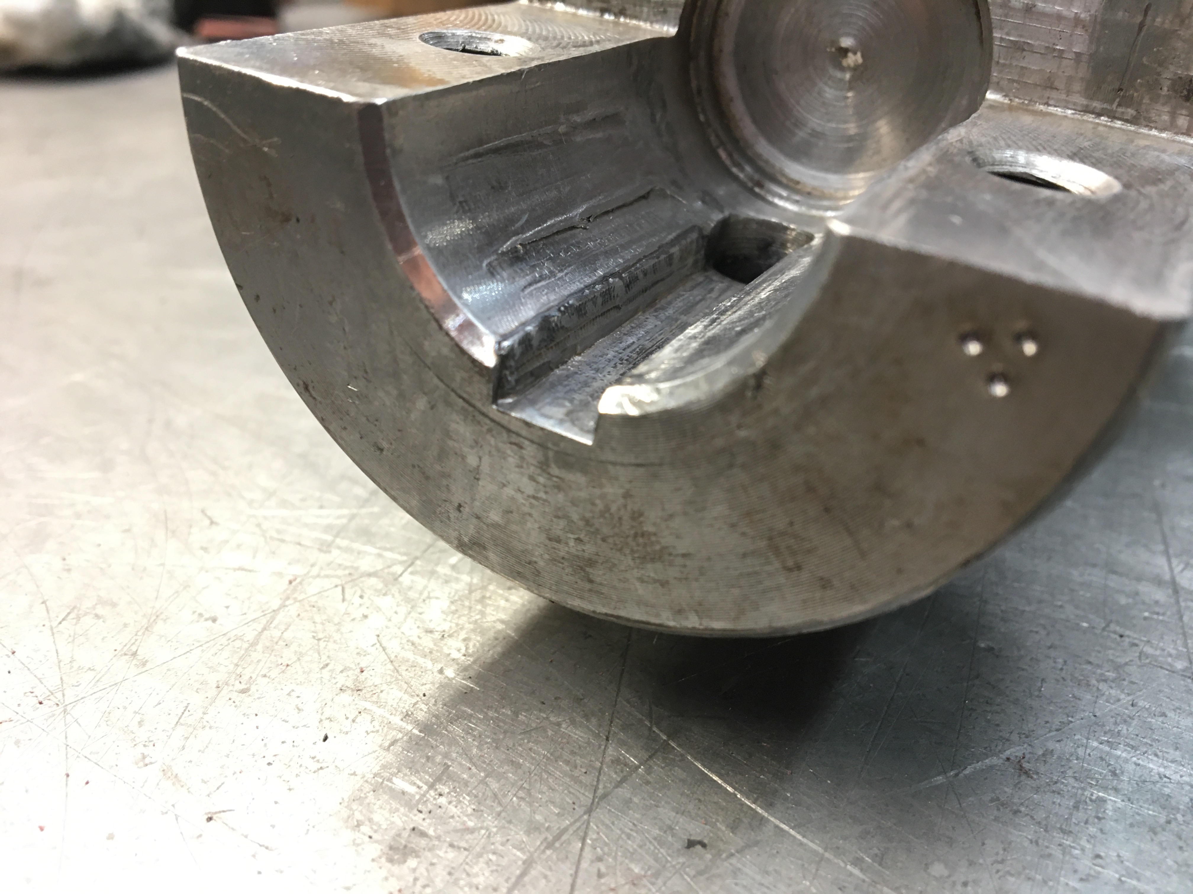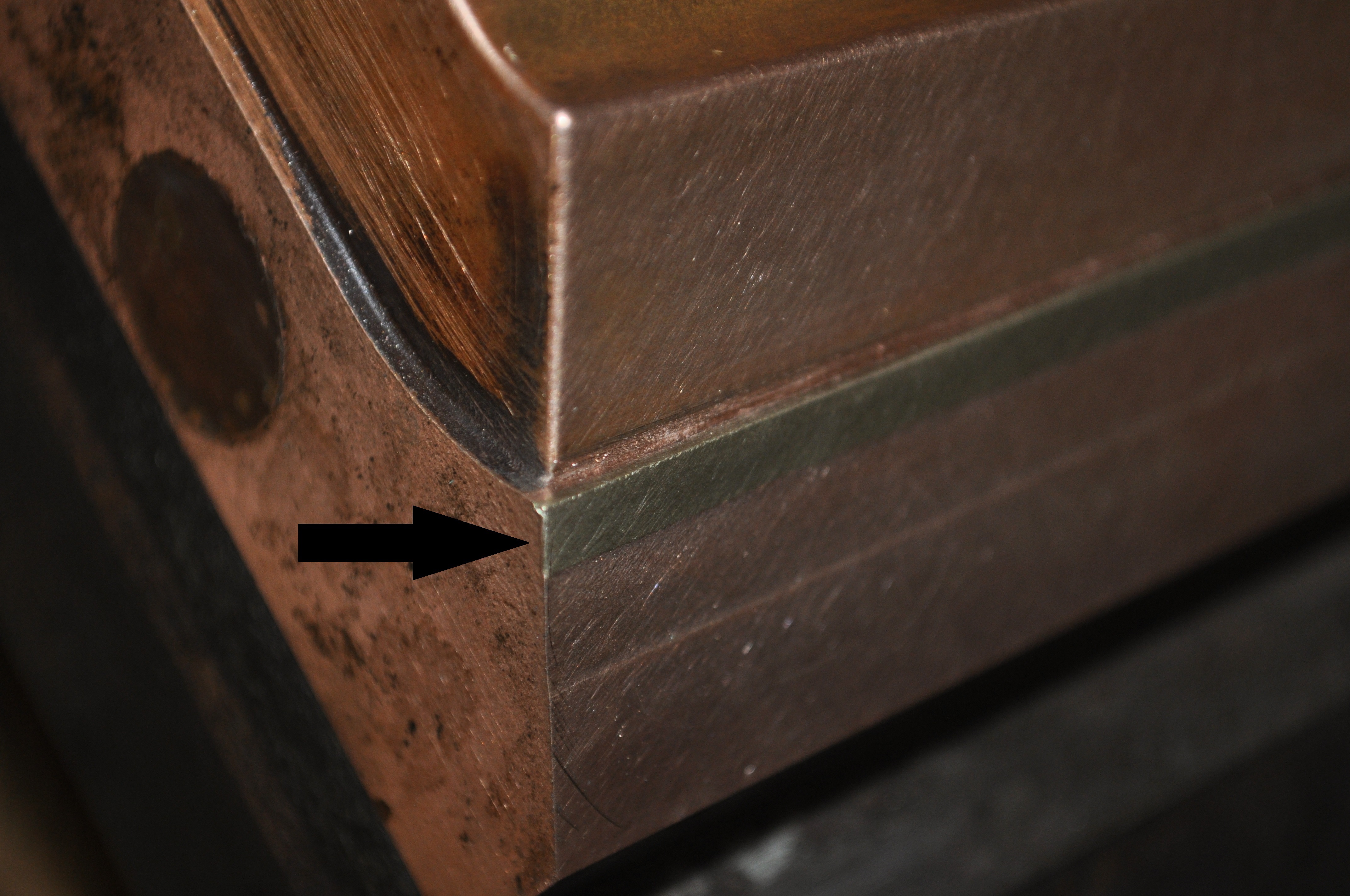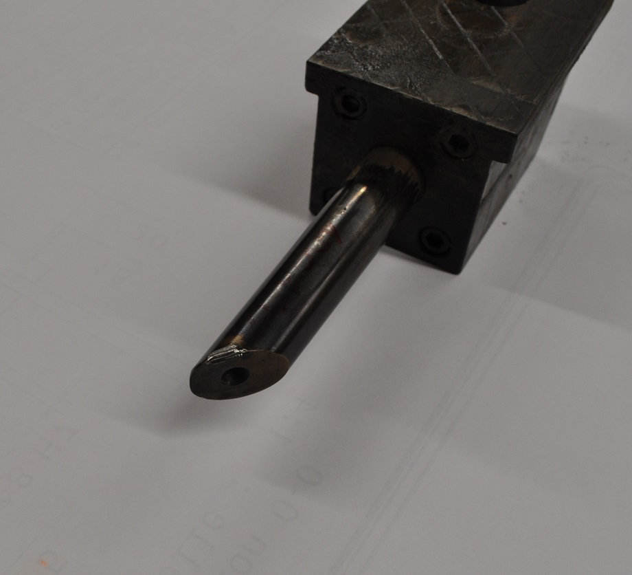 Rechargement d'une arête d'un axe de moule d'injection plastique. Matière: 42CMD8, 1.2312, nitruré.