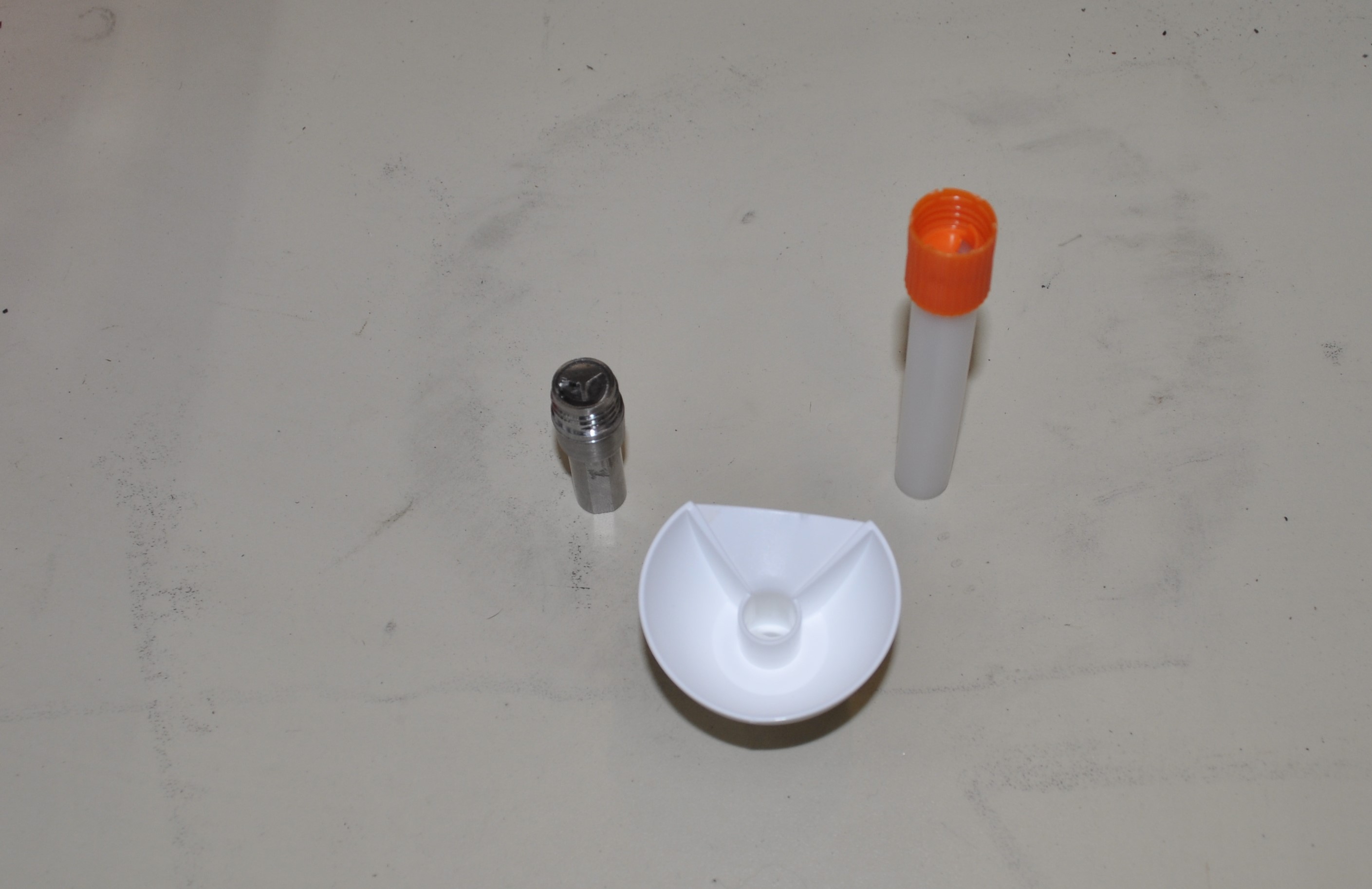 MTL participe à la modification des outils de production des tests salivaires belges du COVID-19. Rechargement d'une rainure sur un insert. Photo de l'insert avec le test salivaire démonté, photo de l'insert avant modification et photo après rechargement. L'insert sera ensuite usiné par l'atelier d'usinage MTU. Matière: 1.2312 trempé.