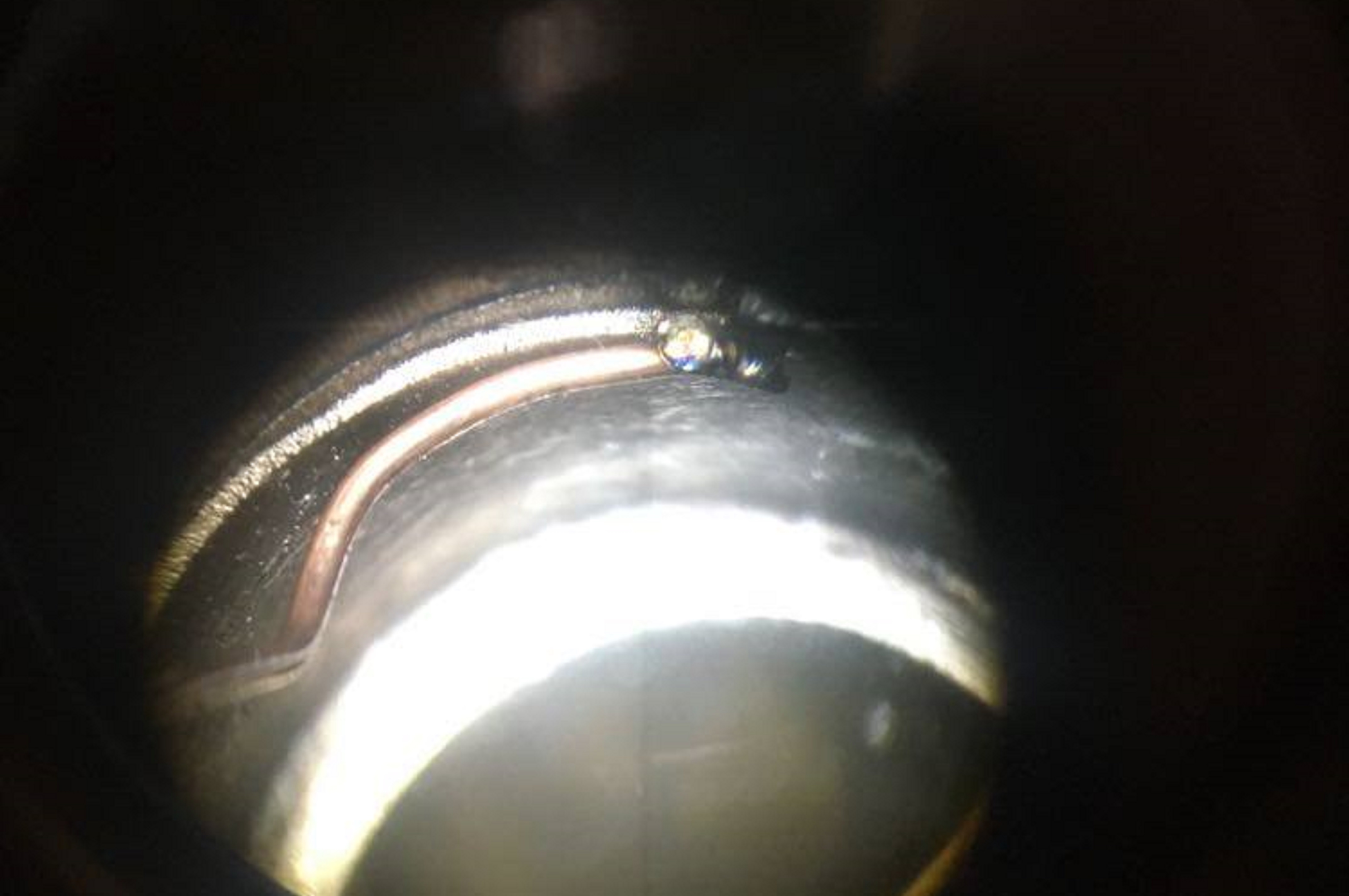 MTL participe à la modification des outils de production des tests salivaires du COVID-19. Rechargement d'un mm³ sur une arête d'un moule à 16 empreintes. Arête à plusieurs cm de profondeur dans un alésage. Photo du moule et photo du début de l'opération à travers le microscope. Matière: 1.2312 trempé