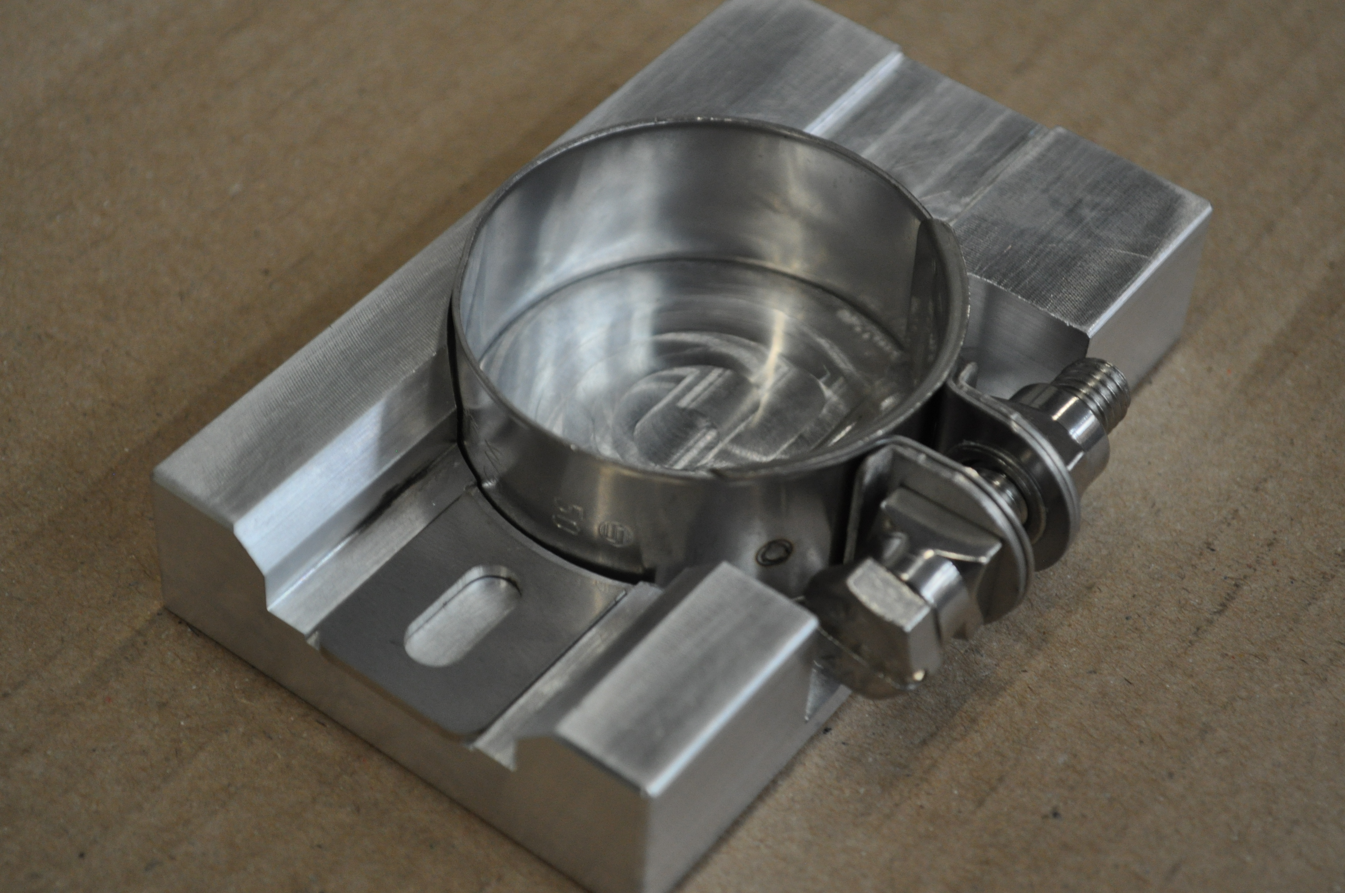 Assemblage d'un élément constituant un clapet antiretour. Soudure d'une patte sur un serflex de 0.8 mm d'épaisseur. L'outillage pour placer la patte précisément a été designé et usiné par MTU. Matière: Inox 304